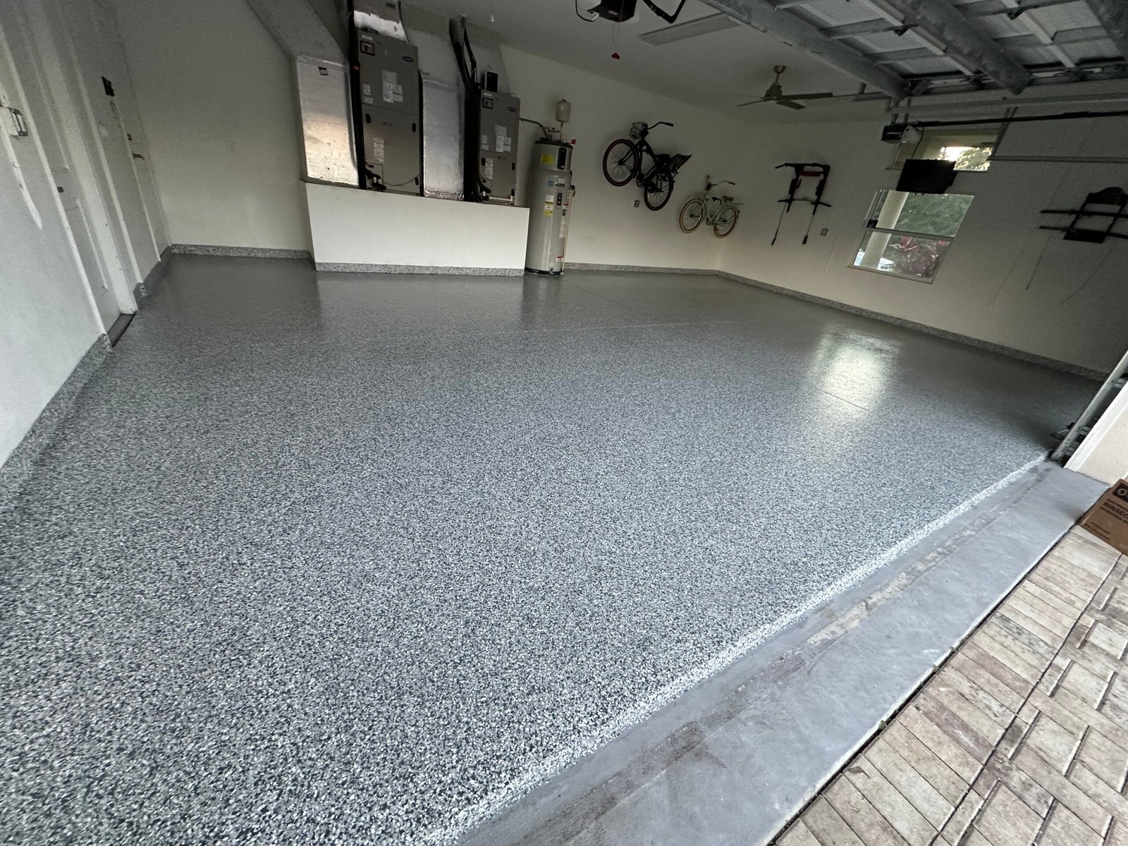Epoxy can become slick when wet, but traction can be improved with anti-slip additives. This is a great option for garages, patios, and busy areas.